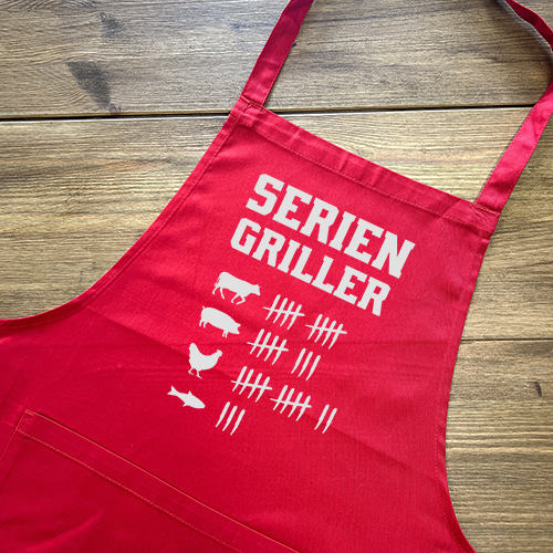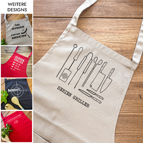 Möchtest du eine lustige Schürze für deinen Papa? Eine elegante Kochschürze für deine Oma? Dann sind unsere Grillschürzen genau das Richtige für dich! Wir haben ein paar Designvorschläge für dich in der Auswahl, wenn du ein eigenes Design wünscht, dann gib uns bescheid und wir individualisieren die Backschürze nach deinem Wunsch.