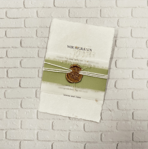 • Das Siegel wird so aufgetragen, dass man die Karte unten raus ziehen kann ohne die Einladung zu beschädigen – das Siegel ist in einem charmanten Altgold