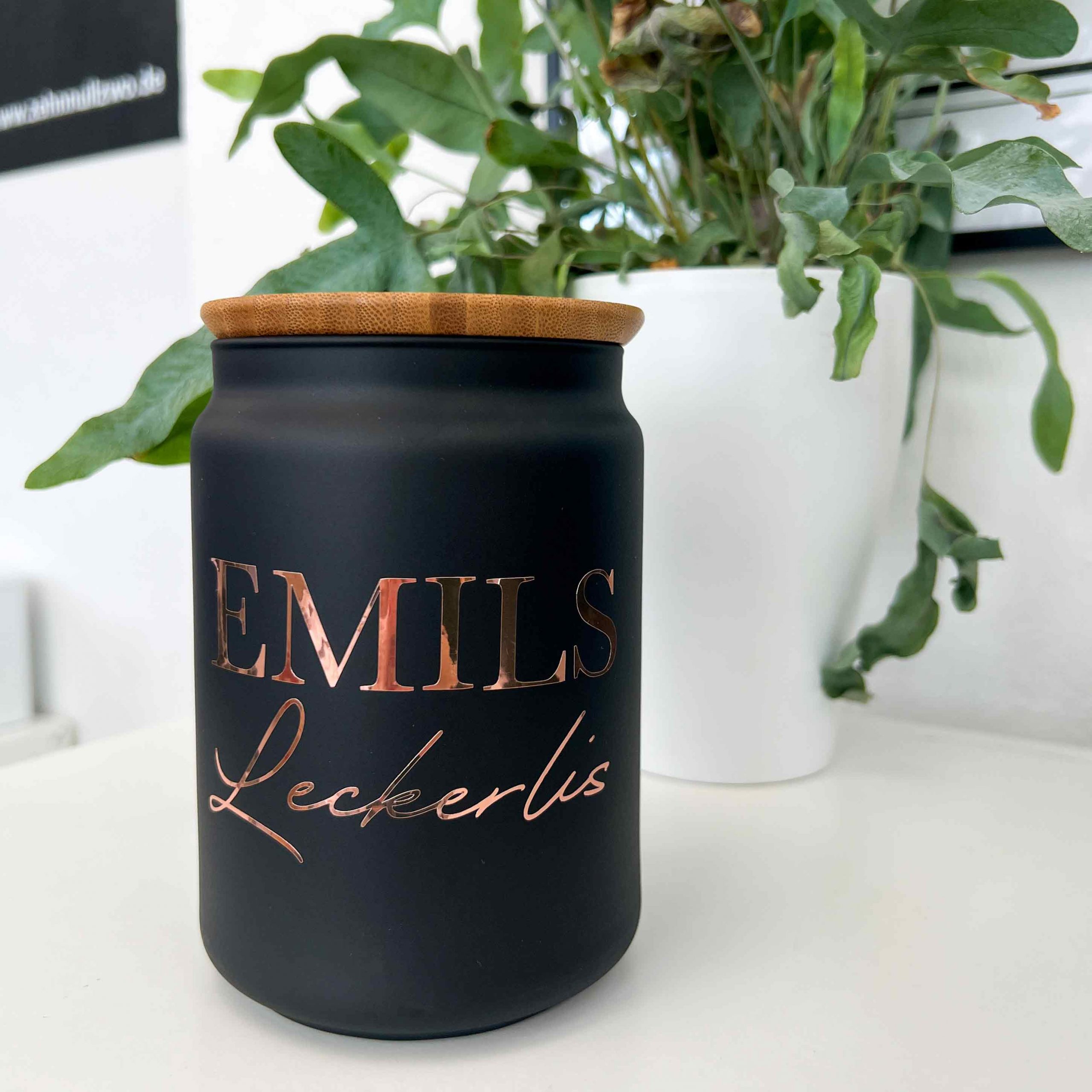 Vielseitig und Personalisierbar: Diese Dose ist nicht nur für Haustiere geeignet. Sie bietet einen sicheren, luftdichten Raum für Leckerlis, Kekse oder andere Köstlichkeiten. Und das Beste? Du kannst sie mit einem persönlichen Text oder Namen individualisieren, was sie zu einem einzigartigen Geschenk für Tierfreunde macht. Wenn du jemand anderem eine Freude machen möchtest, kannst du zum Beispiel auch Wörter wie „Wunscherfüller“ drucken lassen. Als Alternative zu unserem Bestseller in der weiß – goldenen Kombination haben wir auch einen Druck in Rosegold für euch.