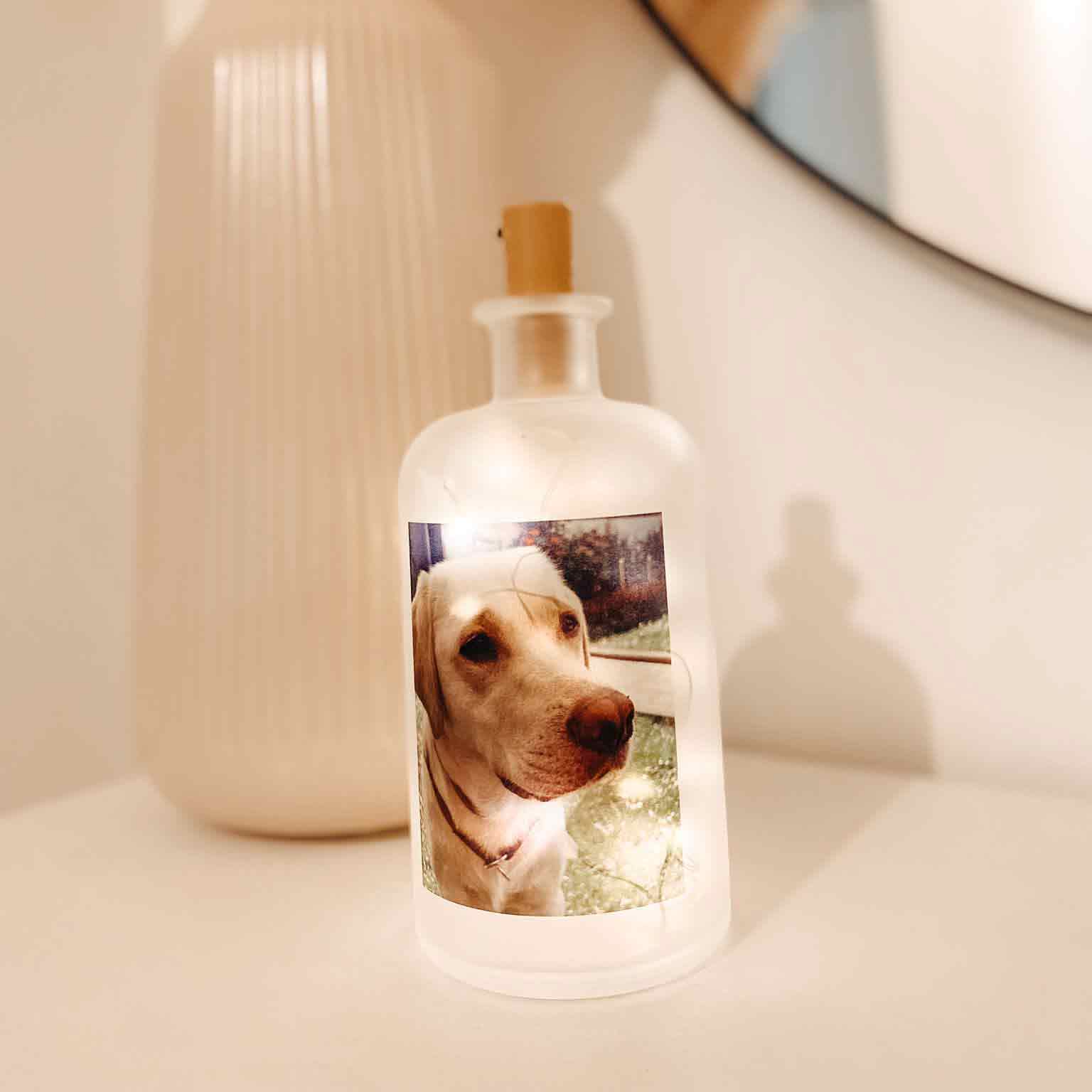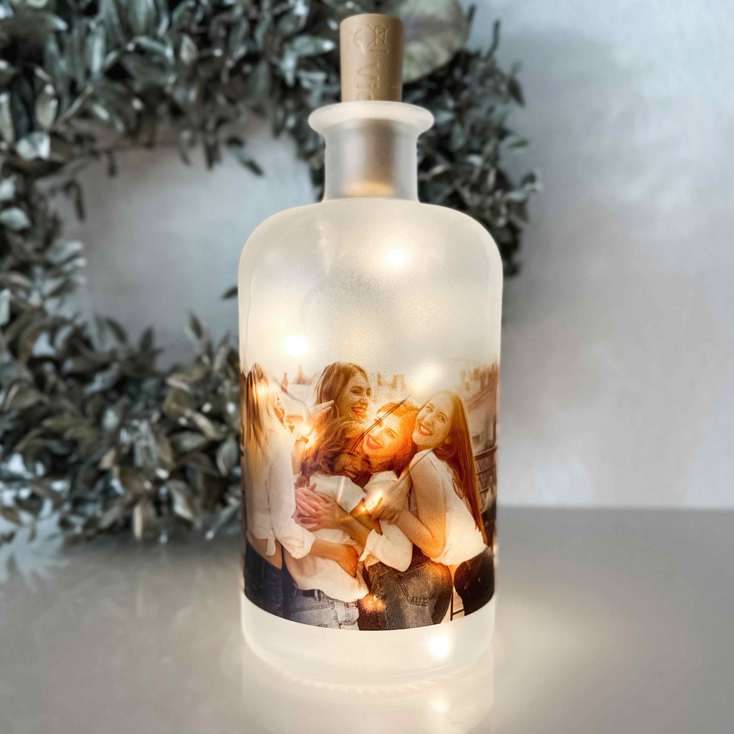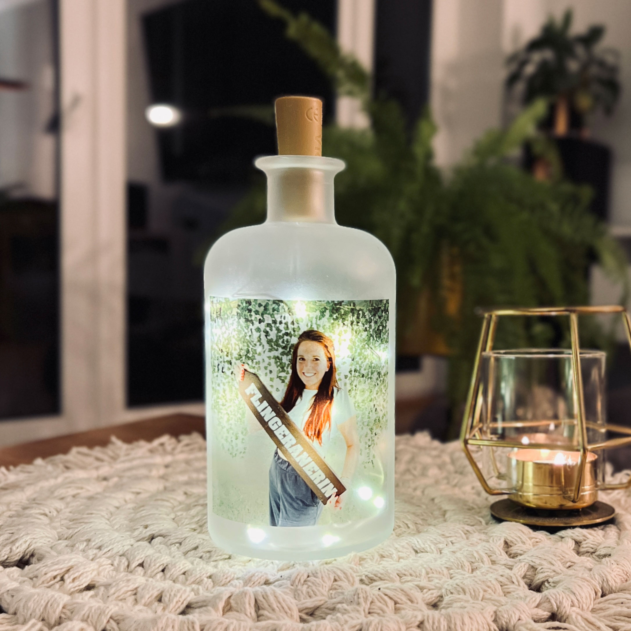 Wie wär es mit einer personalisierten Lichtflasche? Wir drucken dir dein Wunschfoto auf die Lichtflasche!