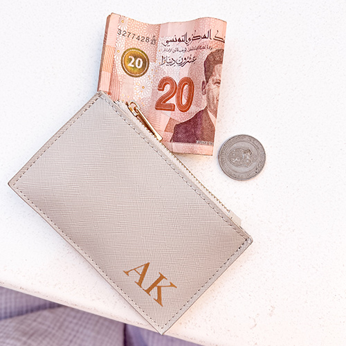 Die Mini Geldbörse hat die idealen Maße von 12,5 x 7,5 cm und passt mühelos in jede Tasche, sodass du sie überallhin mitnehmen kannst. Aber das ist noch nicht alles – wir bieten dir die Möglichkeit, sie ganz nach deinem Geschmack zu gestalten. Personalisiere deine Geldbörse mit deinen Initialen oder einem Namen und mache sie zu einem einzigartigen Accessoire, das deine Persönlichkeit unterstreicht.