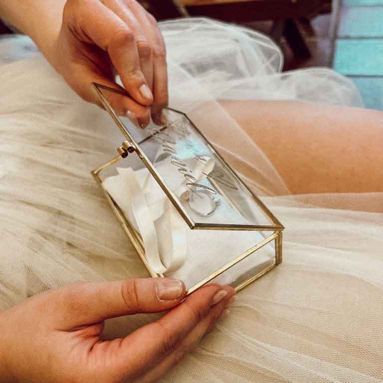 Sucht ihr nach einer ganz besonderen Ringbox für euren großen Tag? Oder nach einer Schmuckbox für die besondere Kette zur Kommunion oder ähnliches? Eure Suche hat ein Ende – hier ist unsere exklusive Ringbox. Diese elegante und liebevoll gefertigte Box ist nicht nur eine sichere Aufbewahrung für euren Schmuck, sondern auch ein Symbol eurer Liebe, Zuneigung und Anerkennung und eine traumhafte Erinnerung.
