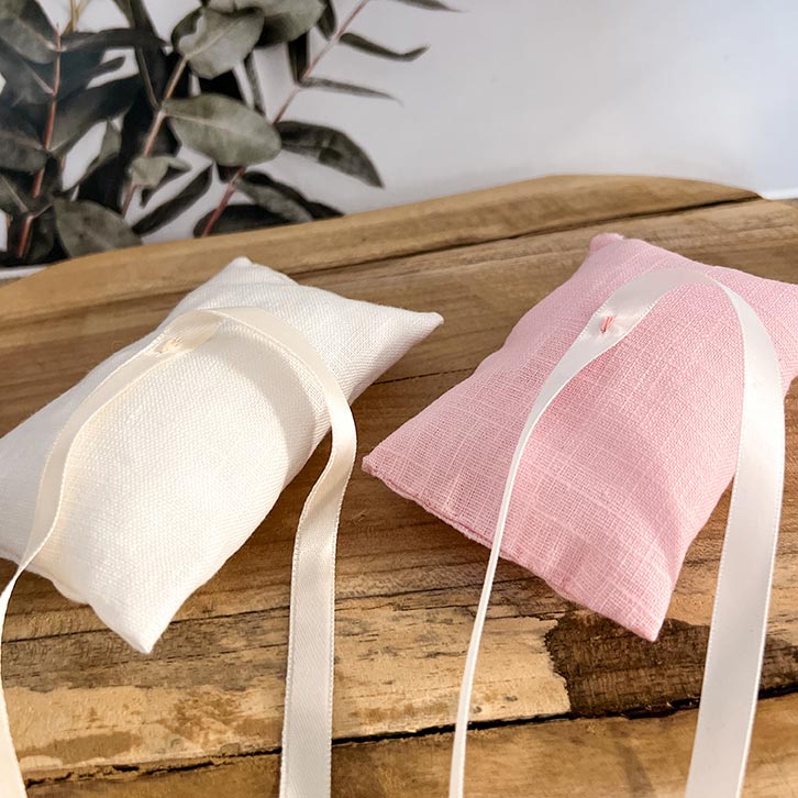 Wir wählen ein Ringkissen aus, Standard ist ein Kissen in Naturtönen. Solltet ihr euch eine bestimmte Farbe wünschen, teilt uns das bitte im Personalisierungsfeld mit.