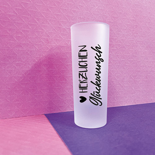 Du kannst zwischen einseitig und beidseitig bedruckten Gläsern wählen. Meistens wird vorne ein Logo oder Design gedruckt und auf der anderen Seite wird dann der Name des beschenkten gedruckt. Aber fühl dich frei in deiner Kreativität!