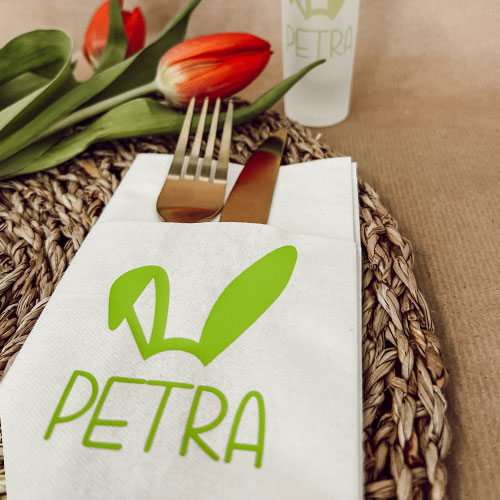 Verleihe deinem gedeckten Ostertisch den letzten Schliff mit unseren individuell bedruckten Servietten! Egal, ob du ein festliches Osterbrunch für deine Liebsten planst oder nach einer originellen Möglichkeit suchst, deine Ostertafel zu verschönern – unsere personalisierten Servietten sind die perfekte Wahl.