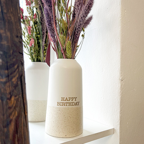 Personalisierten Vasen für dein Zuhause. Ganz gleich, ob du Trockenblumen liebst oder lieber eine schlichte Vase ohne Dekoration bevorzugst – bei uns kannst du deine Wunschvase ganz nach deinem Geschmack gestalten.